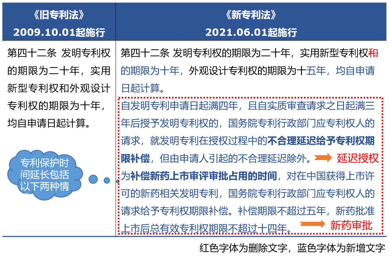 第三款中規(guī)定,為補(bǔ)償新藥上市審評(píng)審批占用的時(shí)間,對(duì)在中國(guó)獲得上市許可的新藥相關(guān)發(fā)明專利,國(guó)務(wù)院專利行政部門應(yīng)專利權(quán)人的請(qǐng)求給予專利權(quán)期限補(bǔ)償。補(bǔ)償期限不超過五年,新藥批準(zhǔn)上市后總有效專利權(quán)期限不超過十四年。