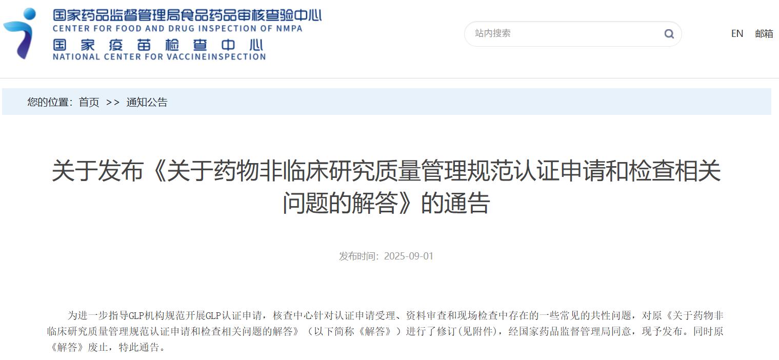 政策法規(guī) ||《關(guān)于藥物非臨床研究質(zhì)量管理規(guī)范認(rèn)證申請和檢查相關(guān)問題的解答》(附法規(guī)概覽9.1-9.5)
