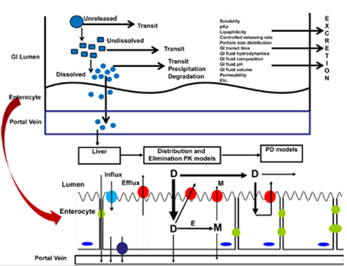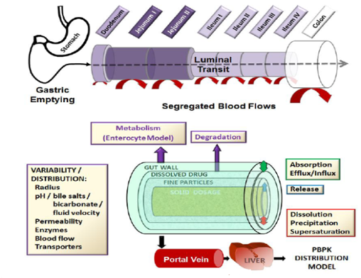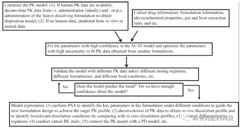 PK模型構(gòu)建:可通過(guò)人體IV數(shù)據(jù),利用反卷積方法計(jì)算PK數(shù)據(jù);或通過(guò)具有快速溶出的口服制劑,獲得處置模型;如無(wú)人體數(shù)據(jù),可利用體外數(shù)據(jù)進(jìn)行預(yù)測(cè),或采用動(dòng)物數(shù)據(jù),進(jìn)行推算。