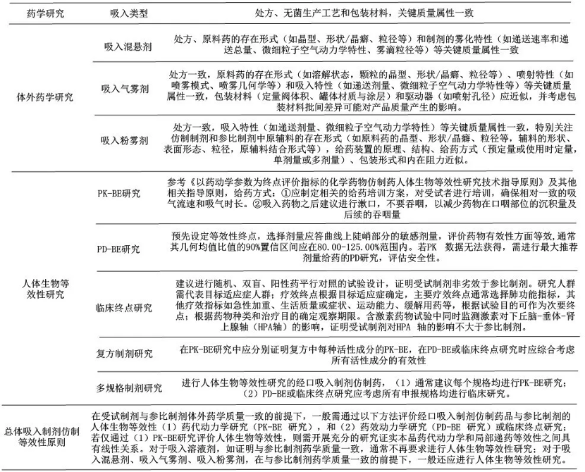 縱觀各國關(guān)于吸入制劑指導(dǎo)原則及指南要求,全球已基本達(dá)成共識(shí),主要涉及無菌保障、霧化特性質(zhì)量研究和生物等效性研究三個(gè)方面,匯總?cè)缦拢?/p>