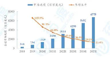 如圖所示,2019年CAR-T全球5市場(chǎng)規(guī)模為7.34億美元,預(yù)計(jì)在未來(lái)五年間,CAGR將達(dá)到46.1%,2025年市場(chǎng)規(guī)模預(yù)計(jì)可達(dá)到67.75億美元。
