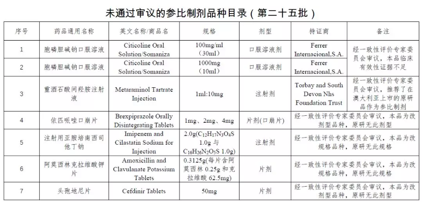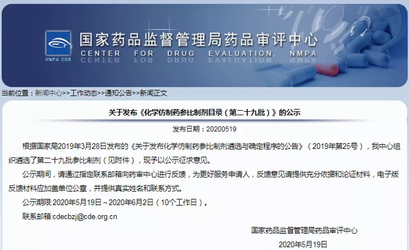 在今年 1 月 10 日,CDE 公示了《化學仿制藥參比制劑目錄》第 25 和 26 批名單征求意見稿中,首次公示未通過審議的參比制劑品種名單,兩批共計 29 個品規(guī)未通過審議。