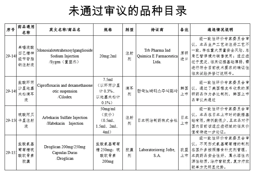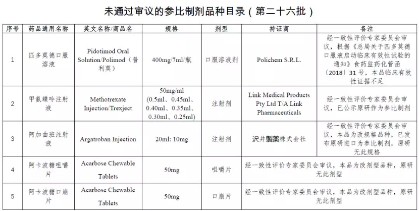 未通過原因:經(jīng)一致性評價專家委員會審議,通過了美國橙皮書收錄的原研藥品作為參比制劑,韓國上市品審議未通過