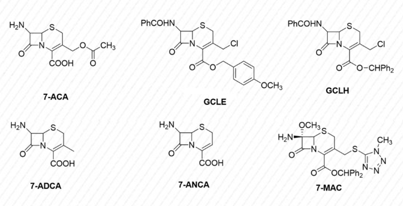 頭孢類化合物具有同樣的核心結(jié)構(gòu)(母核),重要的母核中間體有