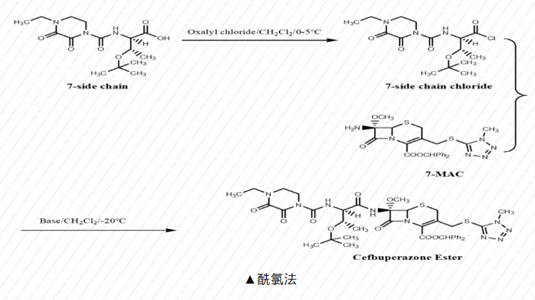 以7-ACA為起始原料,在路易斯酸存在下,與尾鏈連接的方式較多。