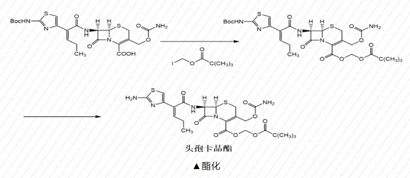 酯化:主要是改造頭孢分子的脂溶性,做成前藥