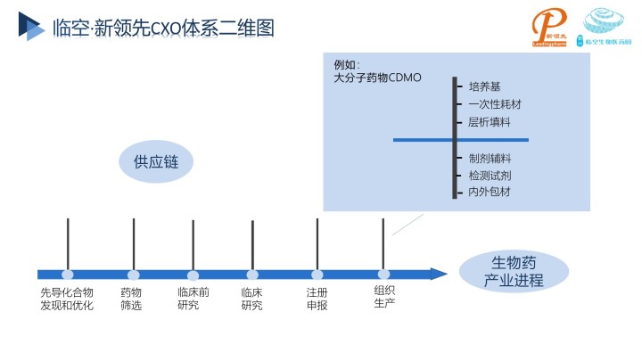 北京新領(lǐng)先董事長(zhǎng)陶新華先生對(duì)臨空·新領(lǐng)先CXO生態(tài)體系進(jìn)行了驚喜解讀。陶總介紹,現(xiàn)行意義上的CXO體系已經(jīng)處在一個(gè)萬(wàn)億級(jí)人民幣的市場(chǎng),市場(chǎng)空間大,同時(shí)也能夠相對(duì)較全面的進(jìn)行產(chǎn)業(yè)鏈的覆蓋,為第三方提供較完善的服務(wù),但都建立在單一公司模型的基礎(chǔ)上,對(duì)產(chǎn)業(yè)鏈進(jìn)行上下游延伸,很難形成產(chǎn)業(yè)鏈的全覆蓋,尤其缺少對(duì)供應(yīng)鏈的覆蓋,代表企業(yè)有:科文斯、PPD、藥明康德、康龍化成等。