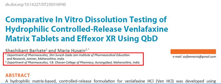 《溶出度試驗技術(shù)雜志(DissolutionTechnologies)》2016年8月,又發(fā)表了一篇由印度馬哈拉施特拉邦所屬藥學(xué)院教授和藥物研究所人員撰寫的“溶出方法的QbD:比較文拉法辛控釋片和參比制劑的溶出曲線”一文。