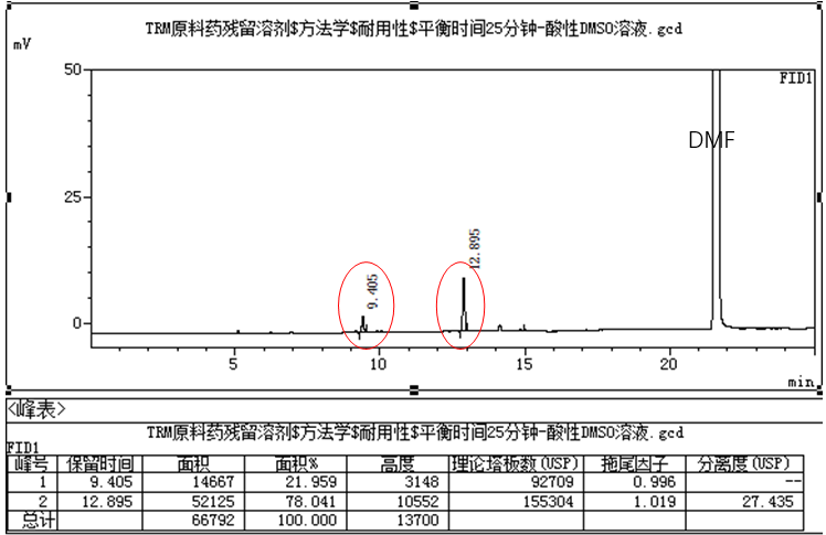 ? 更換DMF作溶劑可改善此現象;但是有的鹽酸類原料藥在DMF中的溶解性不滿足測定要求時,可采用一定比例的DMF:水的混合溶液做溶劑。