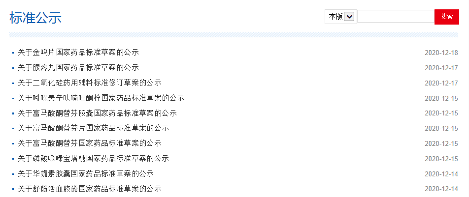 本周金鳴片、腰疼丸、吲哚美辛呋喃唑酮栓、富馬酸酮替芬膠囊、富馬酸酮替芬片、富馬酸酮替芬、磷酸哌嗪寶塔糖、華蟾素膠囊、舒筋活血膠囊、復(fù)方龍膽碳酸氫鈉片、三痹熱寶熨劑、麝香拔濕膏、蛇膽川貝液、清金糖漿國家藥品標(biāo)準(zhǔn)公示,二氧化硅藥用輔料標(biāo)準(zhǔn)修訂草案公示。