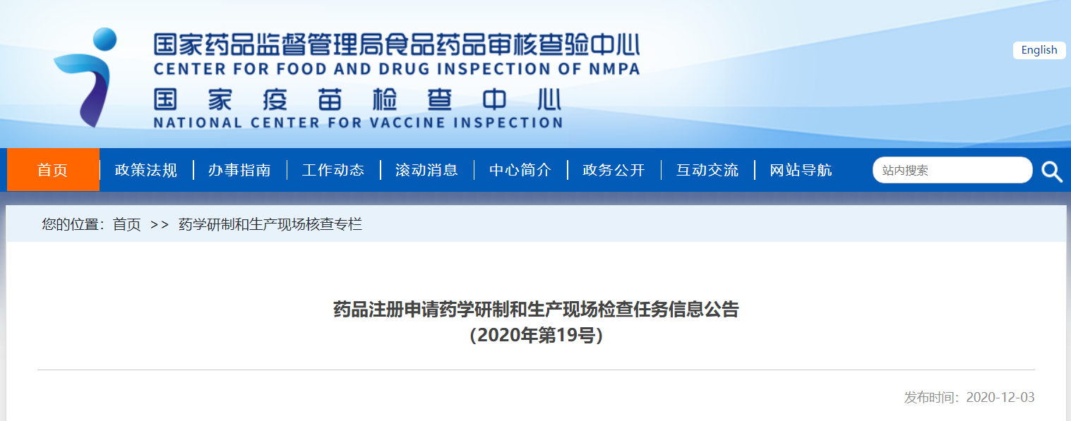 藥品注冊(cè)申請(qǐng)藥學(xué)研制和生產(chǎn)現(xiàn)場(chǎng)核查任務(wù)信息公告(2020年第19號(hào))、(2020年第20號(hào)),共計(jì)57個(gè)品種。