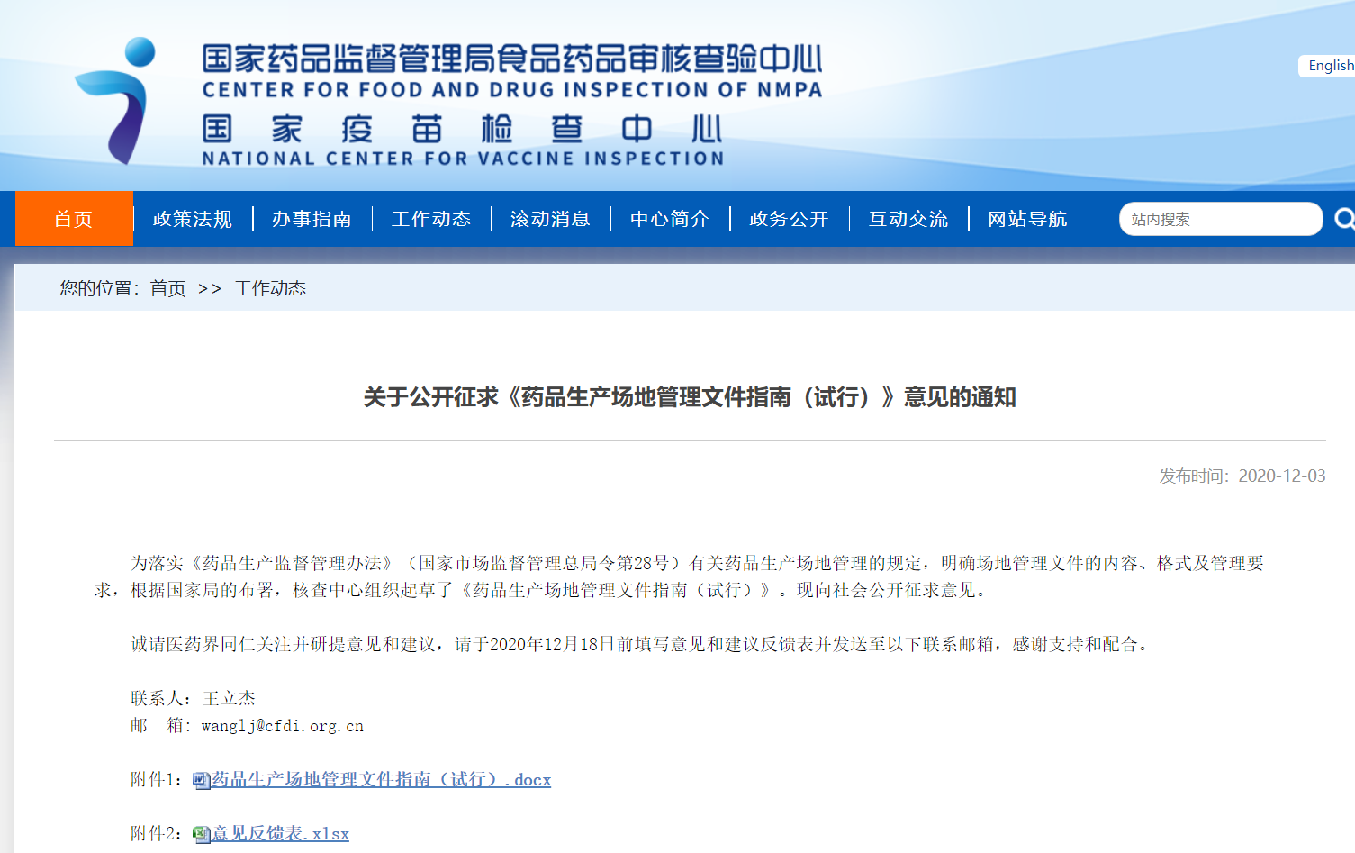 為落實(shí)《藥品生產(chǎn)監(jiān)督管理辦法》(國(guó)家市場(chǎng)監(jiān)督管理總局令第28號(hào))有關(guān)藥品生產(chǎn)場(chǎng)地管理的規(guī)定,明確場(chǎng)地管理文件的內(nèi)容、格式及管理要求,根據(jù)國(guó)家局的布署,核查中心組織起草了《藥品生產(chǎn)場(chǎng)地管理文件指南(試行)》。現(xiàn)將該指南公開(kāi)并征求意見(jiàn),時(shí)間截止至2020.12.18。