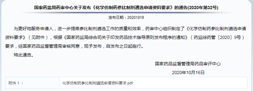 ? 國家藥監(jiān)局藥審中心關于發(fā)布《化學仿制藥參比制劑遴選申請資料要求》的通告(2020年第32號)