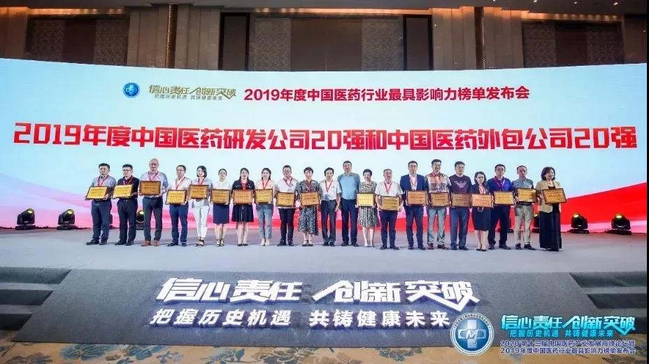 2019年度中國醫(yī)藥行業(yè)最具影響力榜單發(fā)布,新領先作為國內(nèi)最大的全產(chǎn)業(yè)鏈CRO公司,榮獲2019年度中國醫(yī)藥研發(fā)公司榜首!