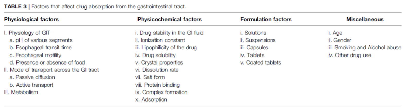 Figure3. 影響小分子藥物體內吸收情況的因素匯總