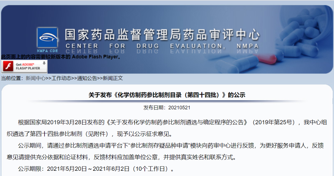 關(guān)于發(fā)布《化學(xué)仿制藥參比制劑目錄(第四十四批)》的公示(征求意見稿)