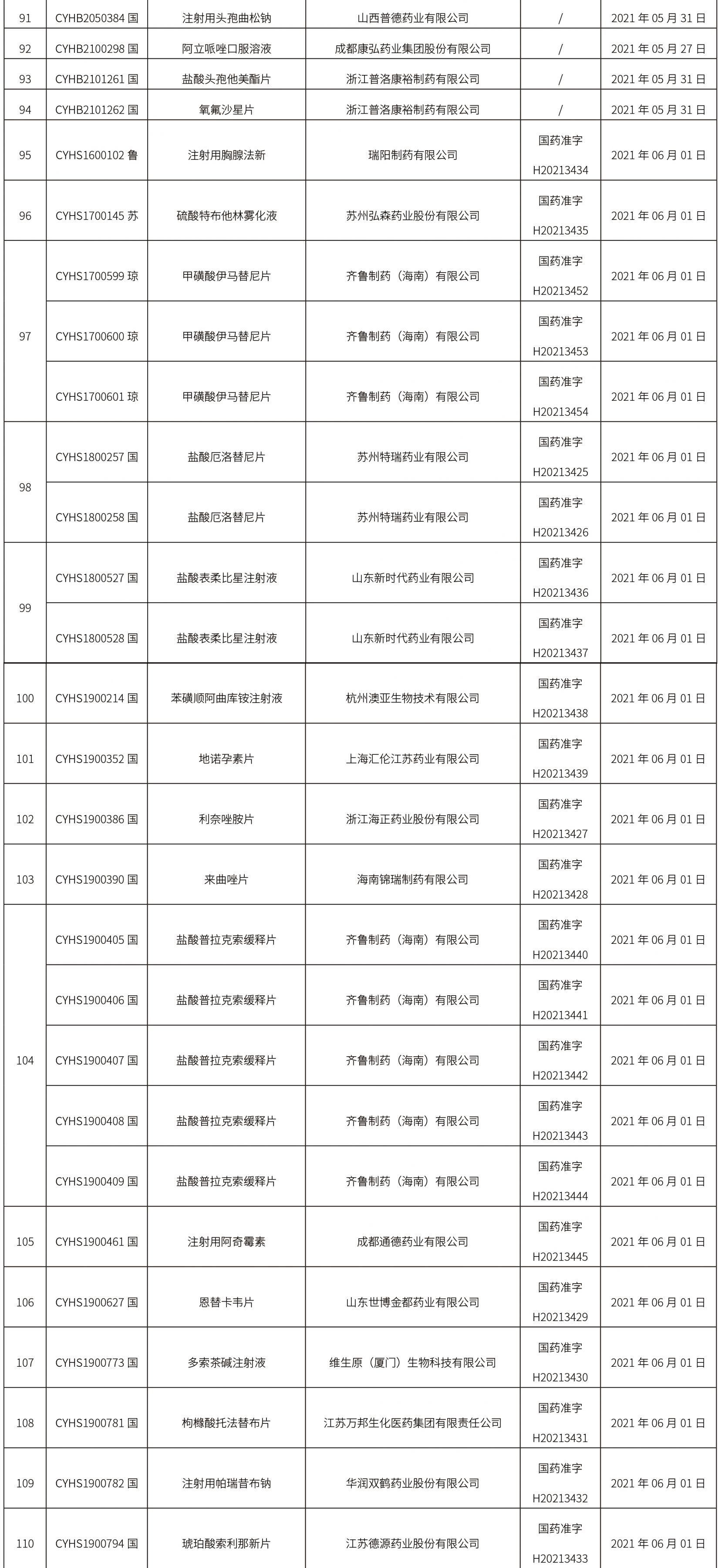 2021年6月2日中藥品種保護(hù)受理公示