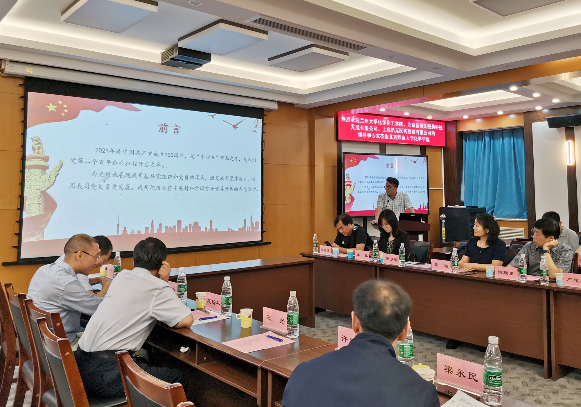北京師范大學(xué)化學(xué)學(xué)院黨委書記盧忠林教授、院長范樓珍教授,蘭州大學(xué)校長助理和科學(xué)技術(shù)發(fā)展研究院執(zhí)行院長許鵬飛教授、化學(xué)化工學(xué)院院長梁永民教授、功能有機(jī)分子化學(xué)國家重點(diǎn)實(shí)驗(yàn)室主任王為教授,北京新領(lǐng)先醫(yī)藥董事長陶新華先生、副總裁董穎博士,上海皓元醫(yī)藥首席運(yùn)營官彭立軍博士等眾多專家領(lǐng)導(dǎo)出席了此次黨建活動(dòng)。