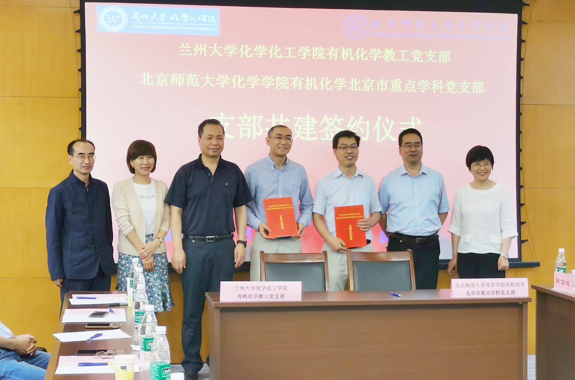 ▲蘭州大學(xué)化學(xué)化工學(xué)院有機(jī)化學(xué)教工黨支部與北京師范大學(xué)化學(xué)學(xué)院有機(jī)化學(xué)北京市重點(diǎn)學(xué)科黨支部共建簽約儀式成功舉行
