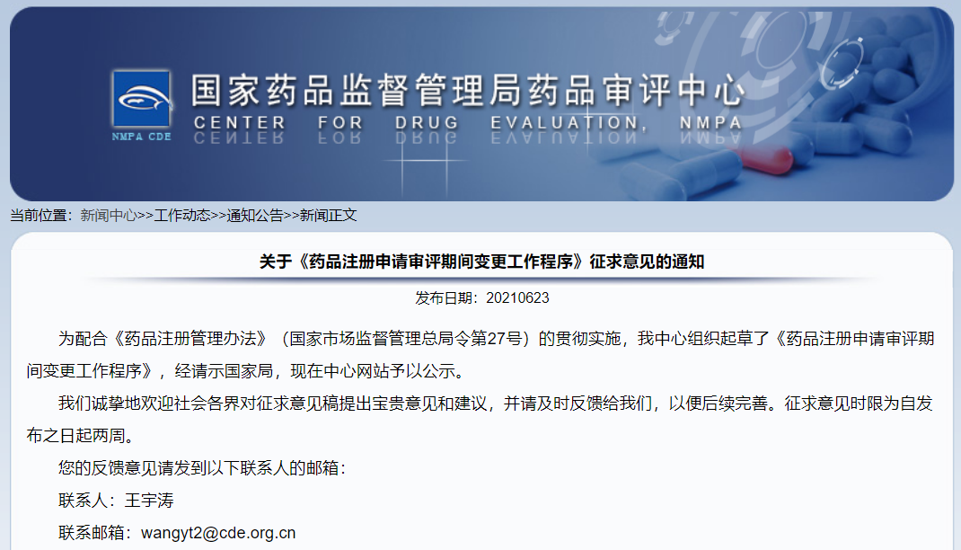 關(guān)于《藥品注冊申請審評期間變更工作程序》征求意見的通知