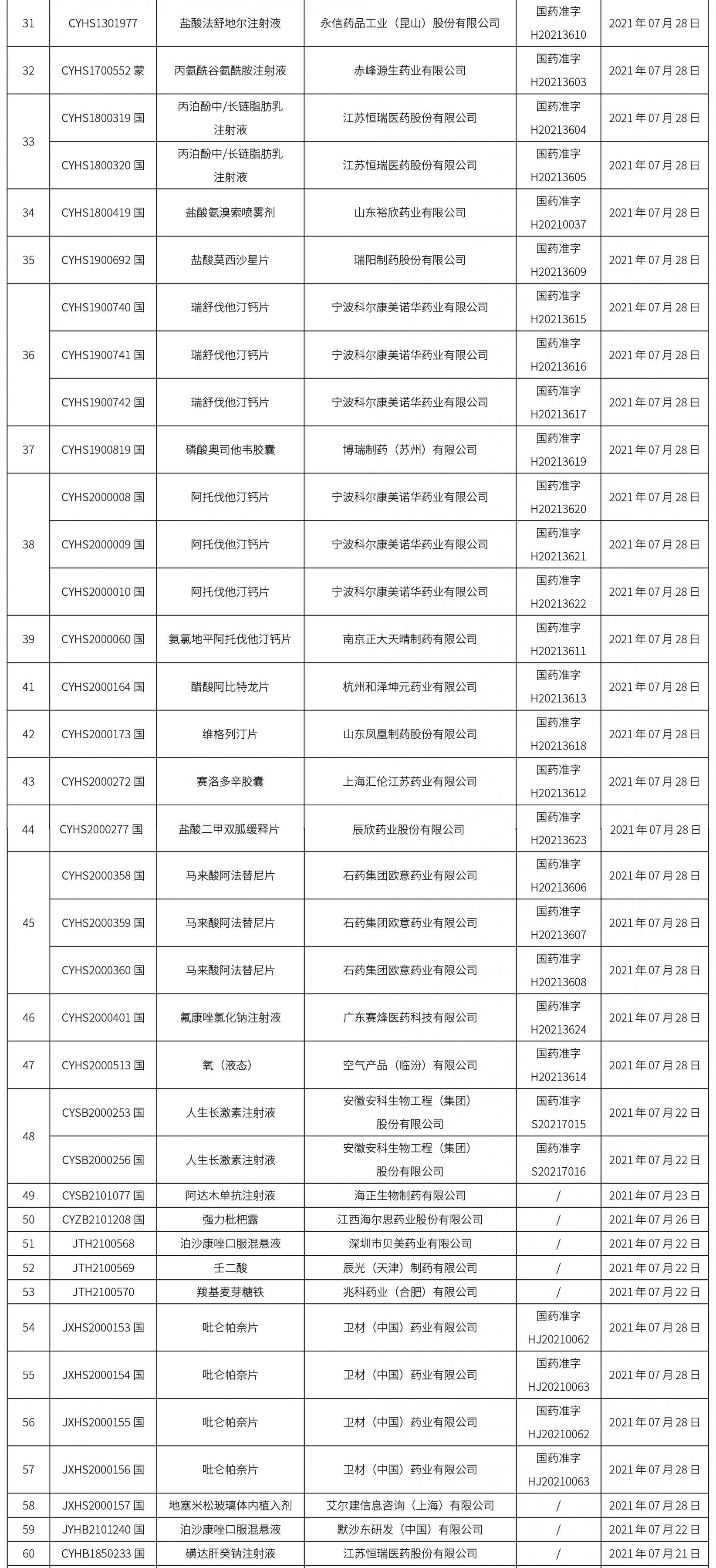 本周共計117個品種獲批取得藥品批準證明文件,其中一致性評價品種21個,注射劑品種37個。
