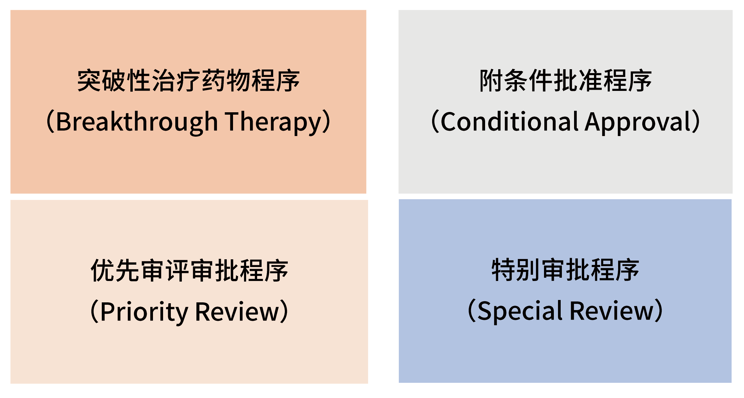 特別明確的支持以臨床價值為導(dǎo)向的藥物創(chuàng)新,為鼓勵真正的創(chuàng)新, 針對不同的申報階段給與相應(yīng)的政策和技術(shù)支持,例如技術(shù)指導(dǎo)、溝通交流,優(yōu)先配置資源,縮短審評時限,溝通交流后補充提交技術(shù)資料等,制定了4種給予政策優(yōu)惠的藥品審評審批程序: