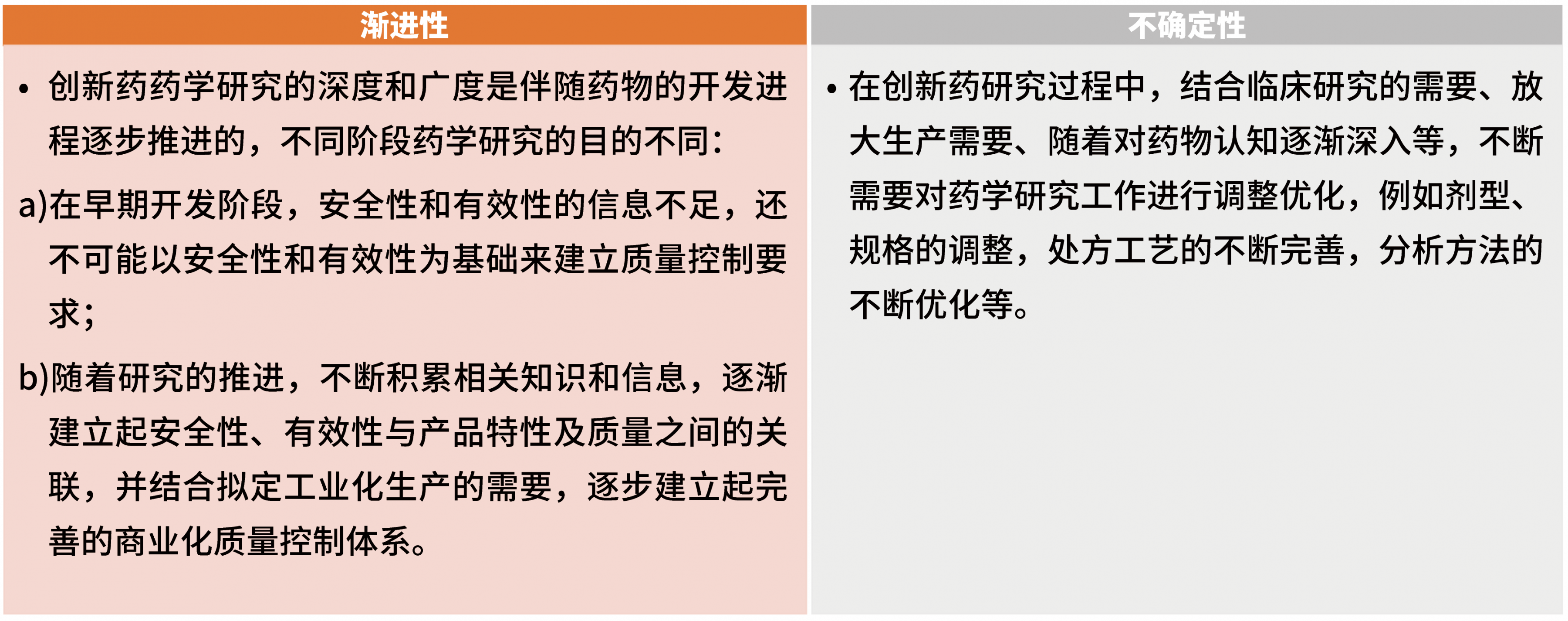 創(chuàng)新藥的藥學(xué)研發(fā)呈現(xiàn)不同于仿制藥的特有規(guī)律和研究特點,具體可歸納為漸進性、不確定性。