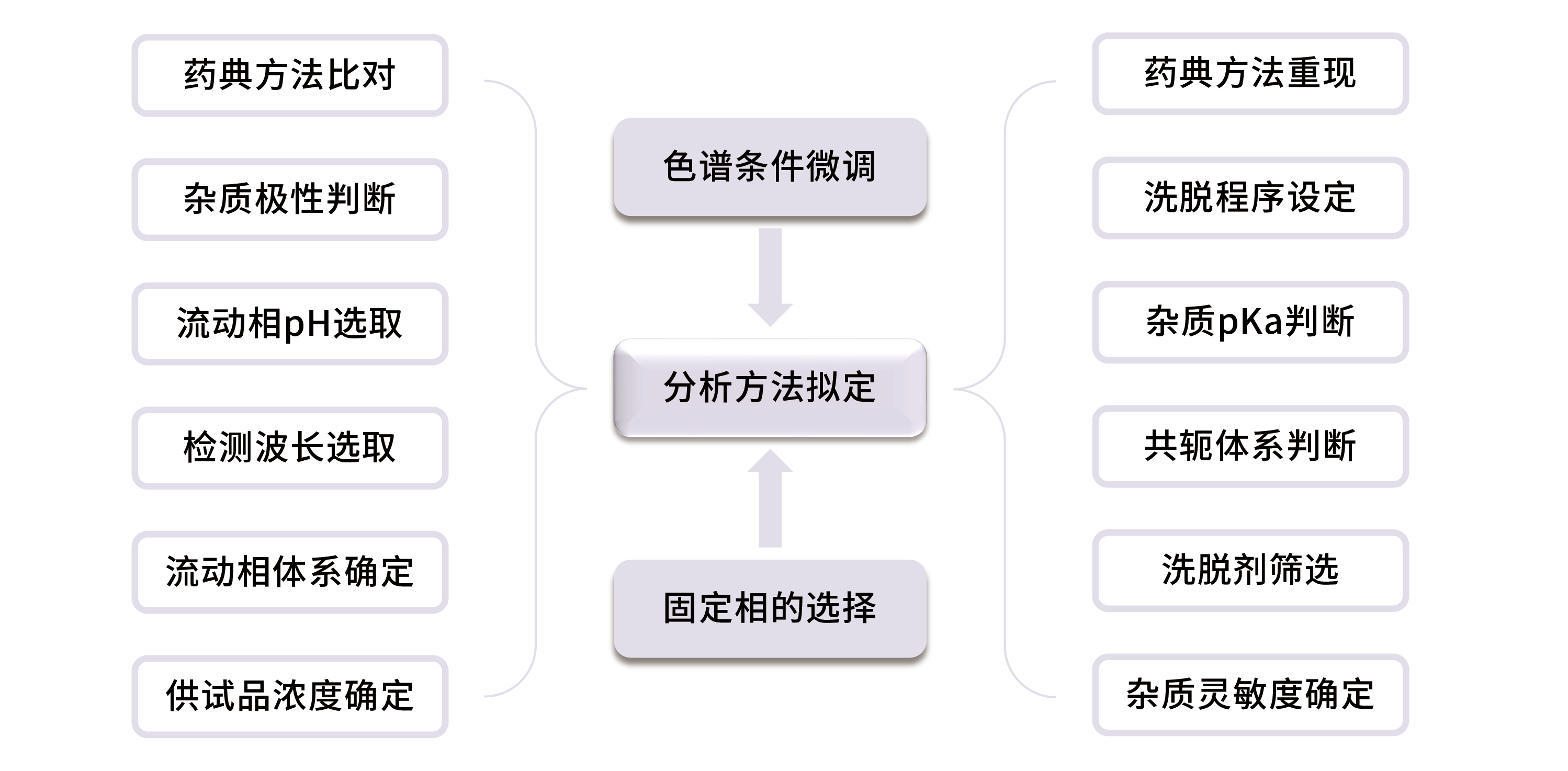 原料藥與雜質(zhì)pKa判斷,以選取流動相體系最佳pH值。