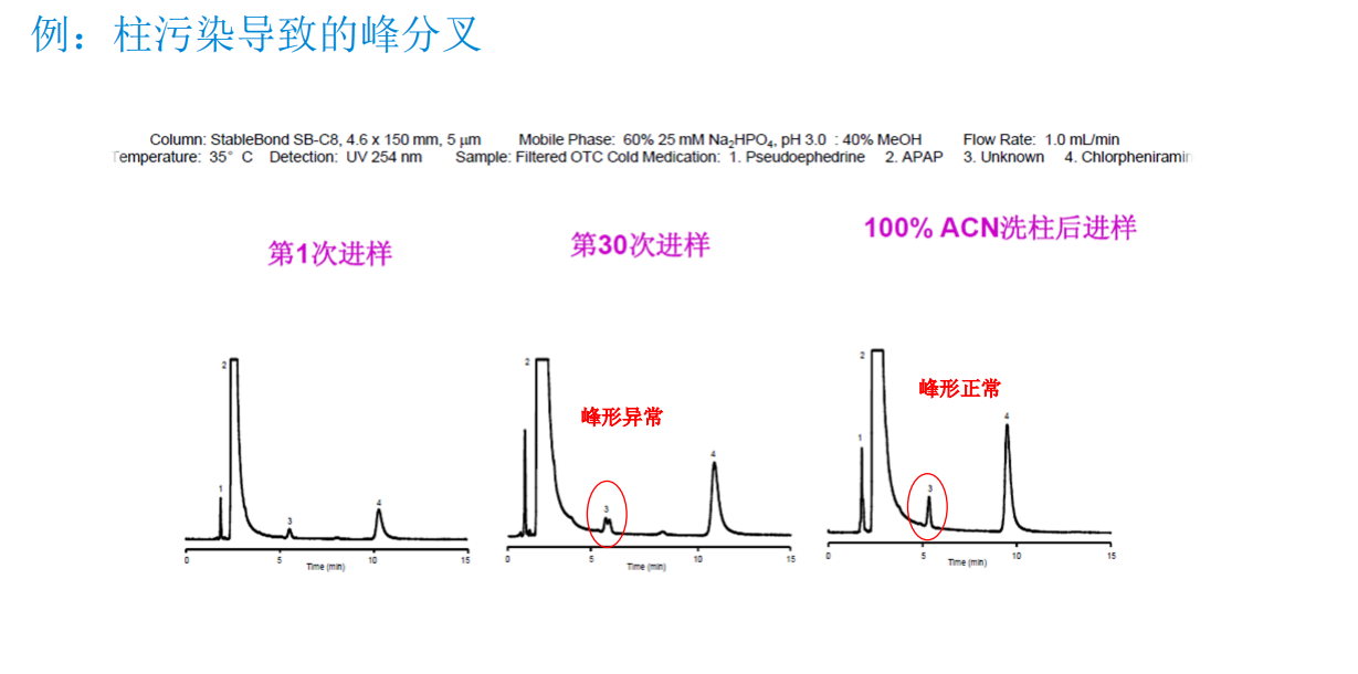 例如:柱污染導致的峰分叉