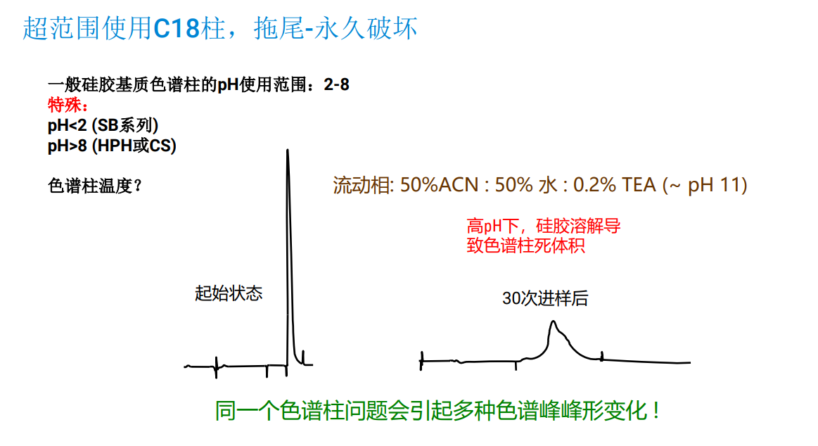 超范圍使用C18柱,拖尾-永久破壞