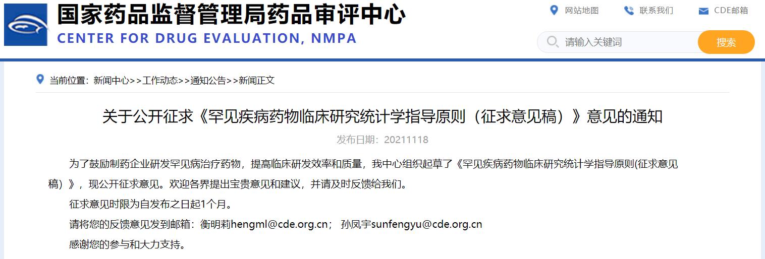 關(guān)于公開征求《罕見疾病藥物臨床研究統(tǒng)計(jì)學(xué)指導(dǎo)原則(征求意見稿)》意見的通知