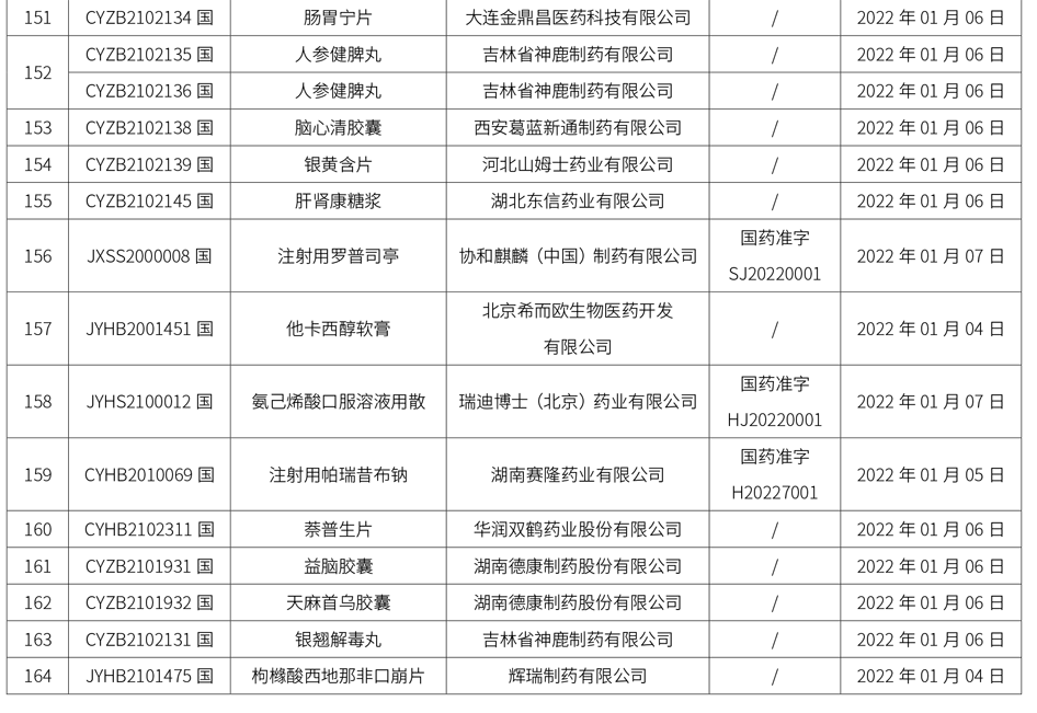 1. 本周共計(jì)164個(gè)品種獲批取得藥品批準(zhǔn)證明文件,其中一致性評(píng)價(jià)品種22個(gè),包括注射劑品種11個(gè)。