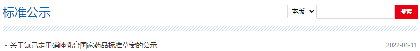 本周氯己定甲硝唑乳膏國(guó)家藥品標(biāo)準(zhǔn)草案的公示。