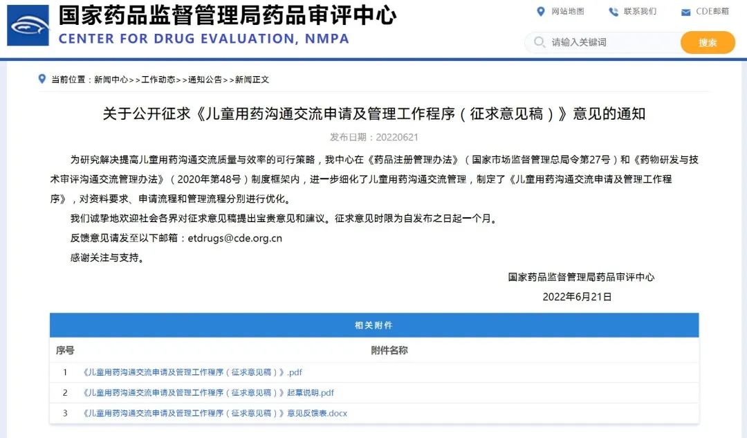 關(guān)于公開征求《兒童用藥溝通交流申請及管理工作程序(征求意見稿)》意見的通知