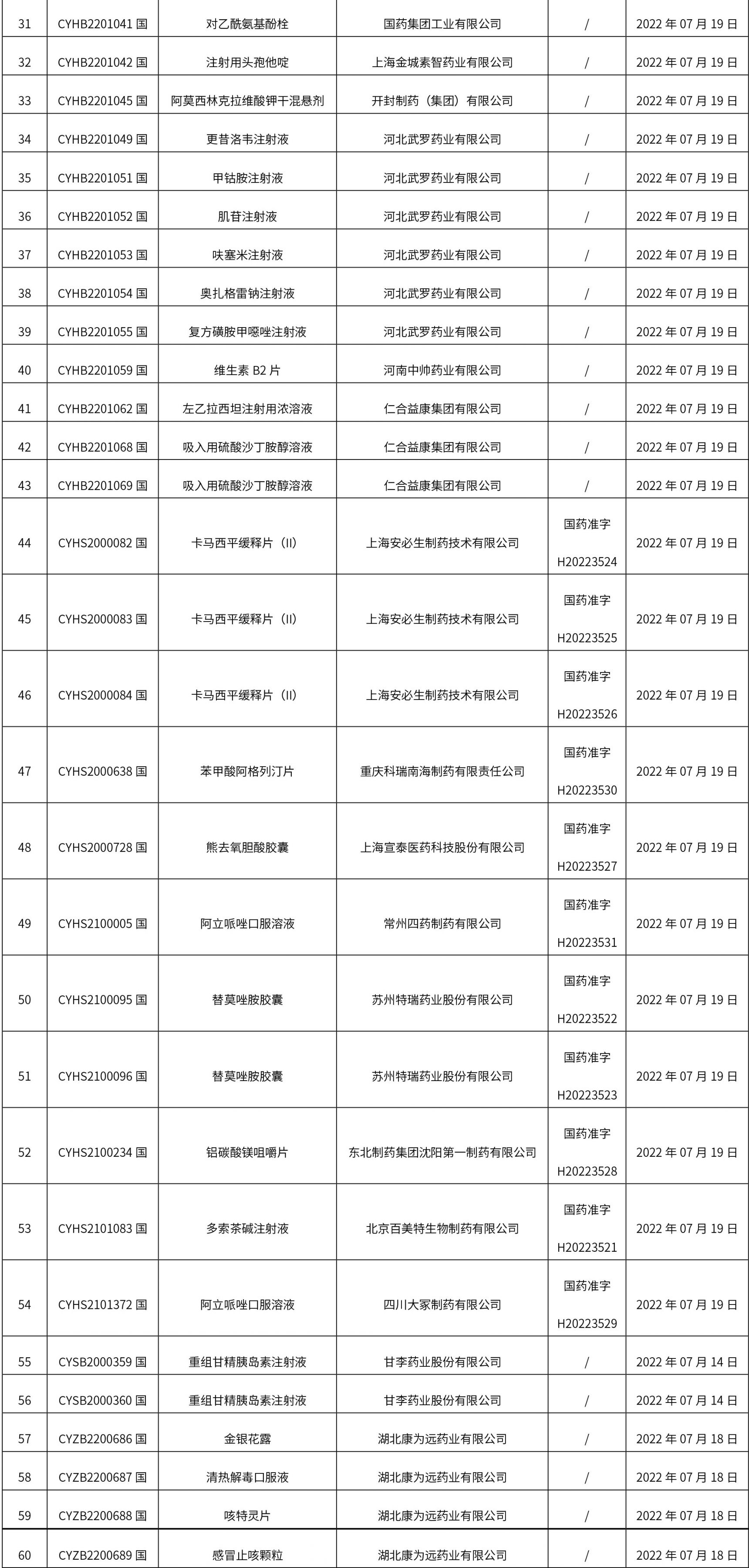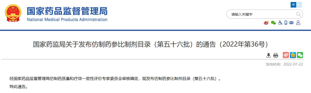 國家藥監(jiān)局關(guān)于發(fā)布仿制藥參比制劑目錄(第五十六批)的通告(2022年第36號)