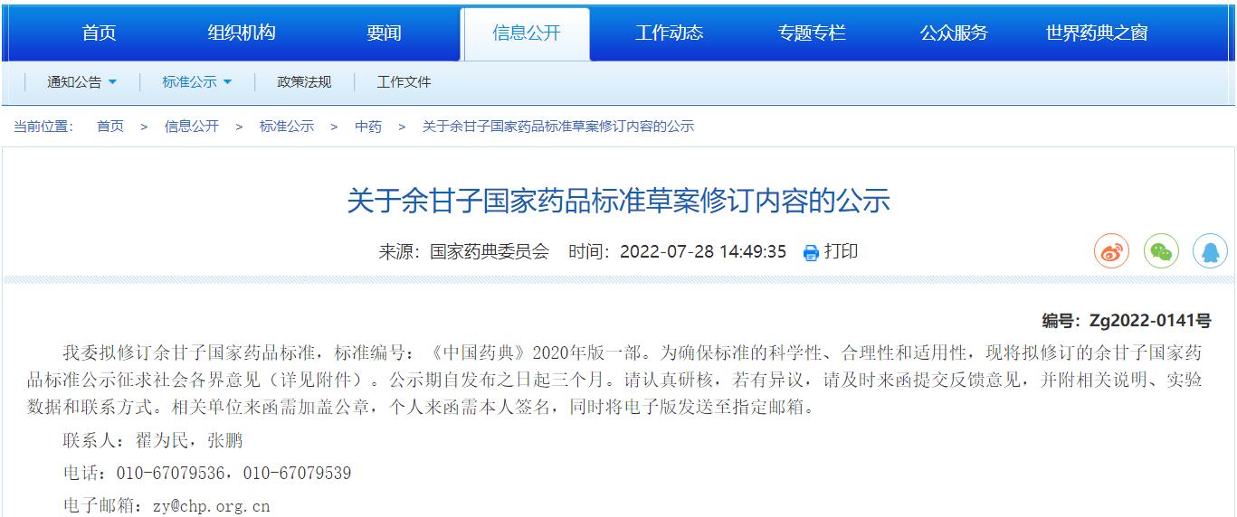 本周藥典委發(fā)布關(guān)于余甘子國(guó)家藥品標(biāo)準(zhǔn)草案修訂內(nèi)容的公示。