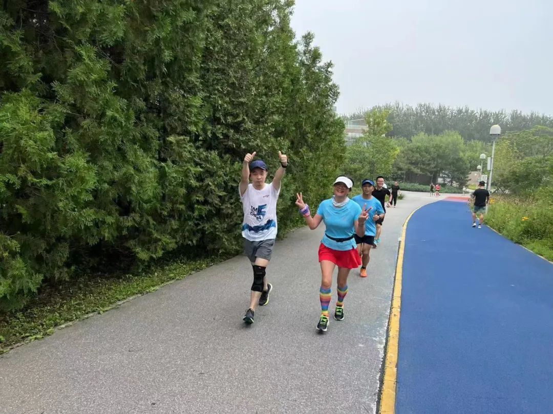 尹老師是北京馬拉松協(xié)會(huì)專(zhuān)業(yè)配速員,今年醫(yī)藥天團(tuán)備戰(zhàn)期間,她與另外兩個(gè)專(zhuān)業(yè)老師在奧森帶領(lǐng)大家一起拉練?!敢?yàn)橛械男』锇槭堑谝淮螀⒓覤MW越山向海,所以我們?cè)诒本W森公園組織了兩次爬坡集訓(xùn)。在這過(guò)程中,我們也分享了無(wú)傷完賽的諸多注意事項(xiàng)?!箯呐芮皽?zhǔn)備活動(dòng)到跑后拉伸指導(dǎo),在備賽訓(xùn)練過(guò)程中,尹小紅老師將自己在北馬協(xié)會(huì)中學(xué)到的理念,毫無(wú)保留地分享給參賽團(tuán)隊(duì)。