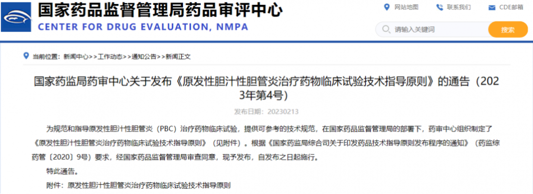 國家藥監(jiān)局藥審中心關于發(fā)布《原發(fā)性膽汁性膽管炎治療藥物臨床試驗技術(shù)指導原則》的通告(2023年第4號)