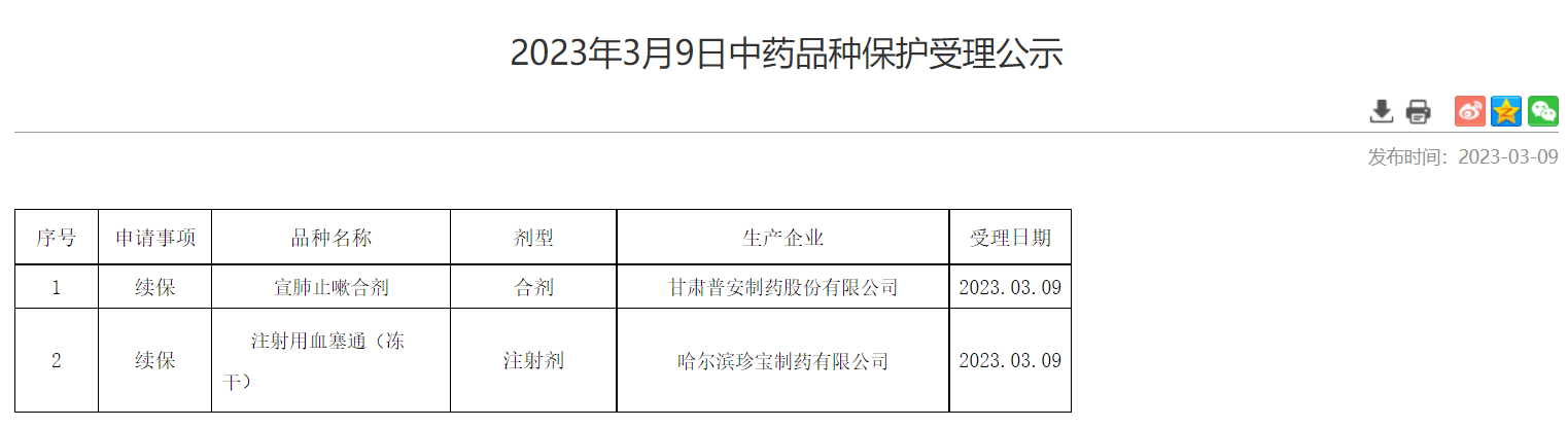 2023年3月9日中藥品種保護(hù)受理公示