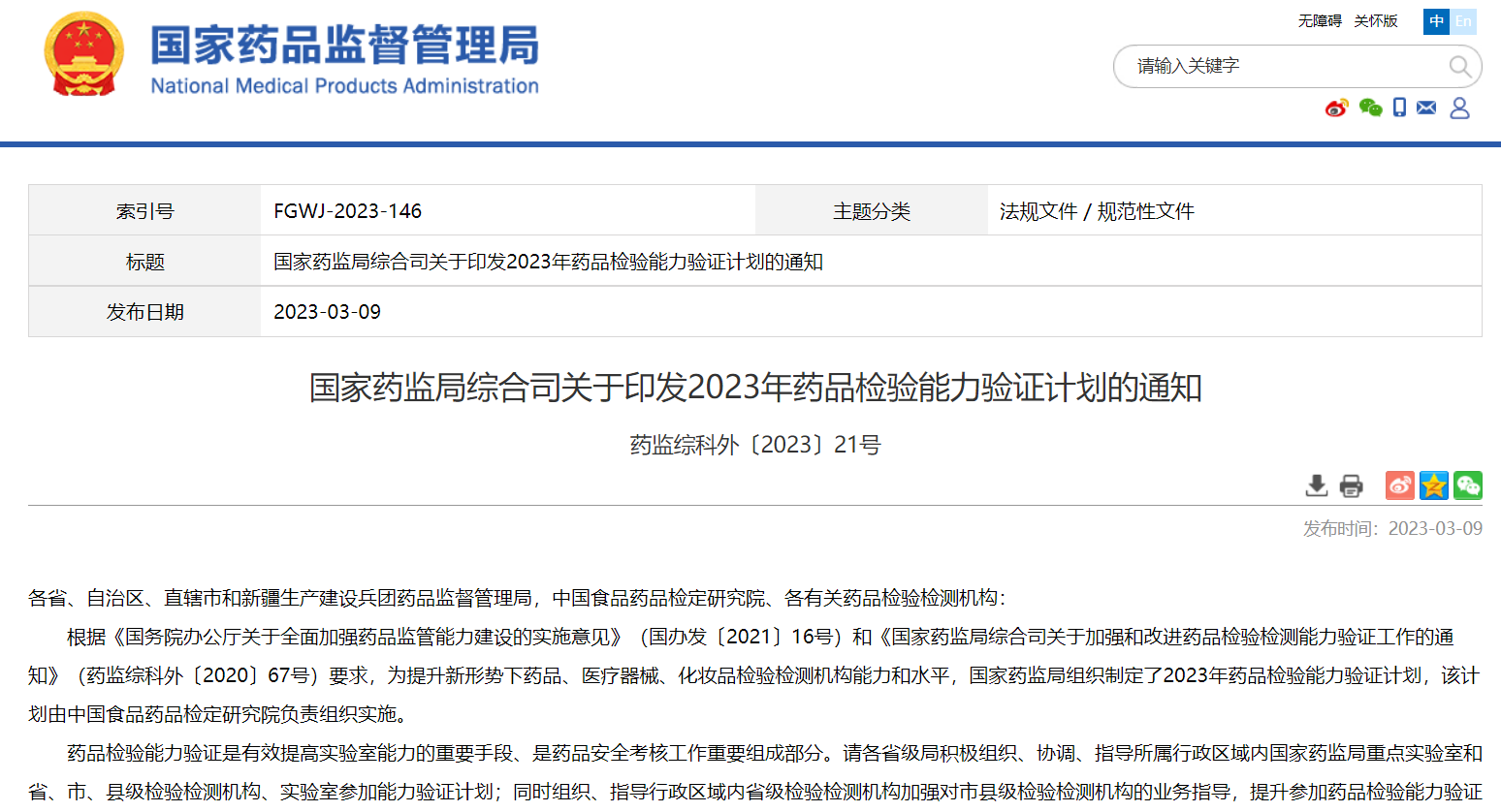 國(guó)家藥監(jiān)局綜合司關(guān)于印發(fā)2023年藥品檢驗(yàn)?zāi)芰︱?yàn)證計(jì)劃的通知