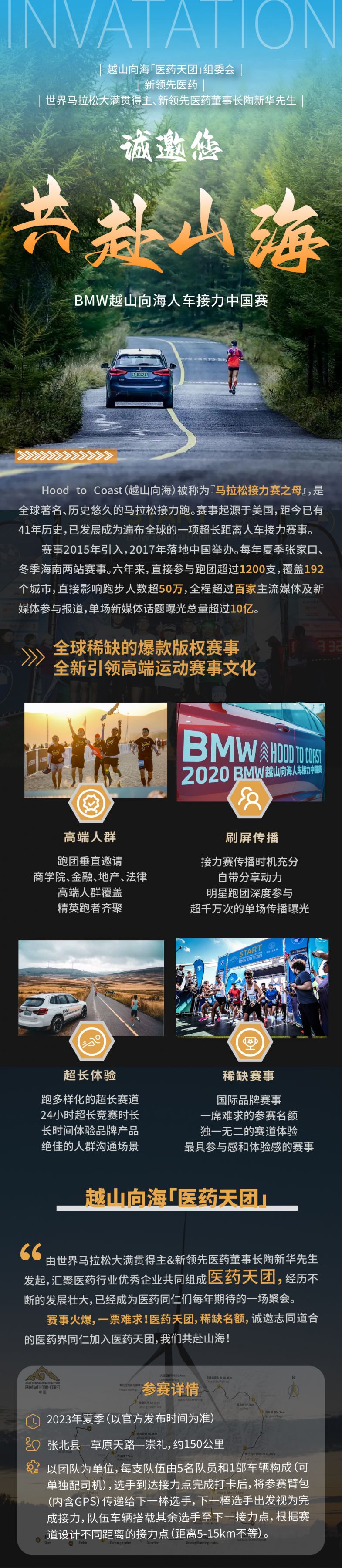 越山向?!羔t(yī)藥天團(tuán)」組委會、新領(lǐng)先醫(yī)藥、世界馬拉松大滿貫得主&新領(lǐng)先醫(yī)藥董事長陶新華先生誠邀您共赴山海!