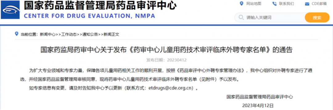 國(guó)家藥監(jiān)局藥審中心關(guān)于發(fā)布《藥審中心兒童用藥技術(shù)審評(píng)臨床外聘專家名單》的通告