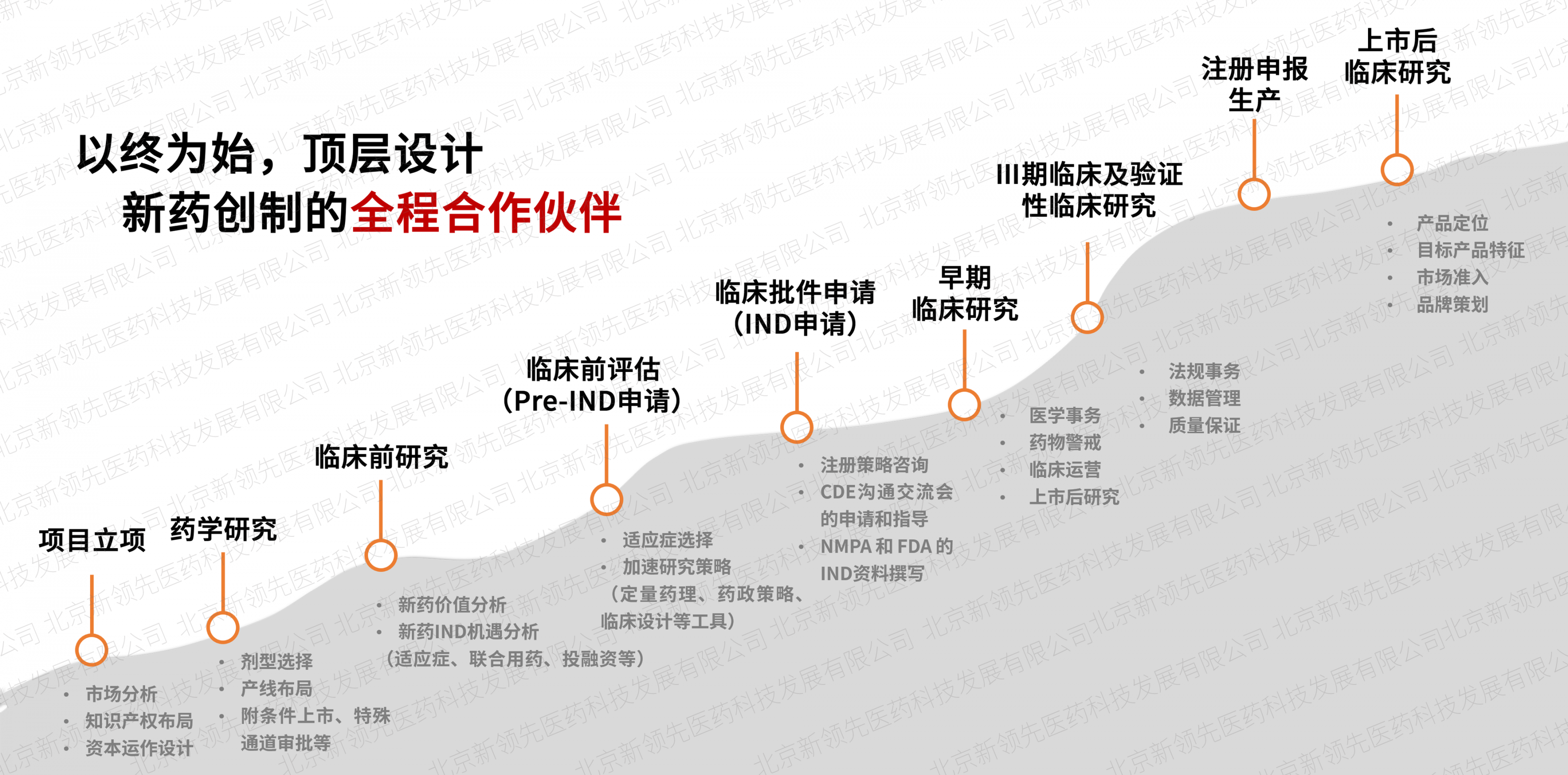 高總指出,自2021年CDE發(fā)布《以臨床價(jià)值為導(dǎo)向的抗腫瘤藥物臨床研發(fā)指導(dǎo)原則》,新藥研發(fā)回歸臨床需求,最終實(shí)現(xiàn)商業(yè)價(jià)值和社會(huì)價(jià)值,已成為新藥研發(fā)相關(guān)各界人士的普遍共識(shí)。當(dāng)前市場上CRO貫穿整個(gè)研發(fā)鏈條,但是單元化的服務(wù)模式,缺乏頂層設(shè)計(jì),無法做到伴隨性成長。基于此,新領(lǐng)先提出“以終為始,頂層設(shè)計(jì),做新藥創(chuàng)制的全程合作伙伴”的理念,結(jié)合自身CXO全產(chǎn)業(yè)鏈閉環(huán)優(yōu)勢,通過資金、團(tuán)隊(duì)和經(jīng)驗(yàn)的全方面支撐,為高校搭建合作渠道,實(shí)現(xiàn)企業(yè)、醫(yī)院、高校、學(xué)會(huì)、資金及海外團(tuán)隊(duì)等“政產(chǎn)學(xué)研用”全面合作,提高創(chuàng)新研究及轉(zhuǎn)化效率,全程陪同項(xiàng)目成長,助力創(chuàng)新成果早日上市。