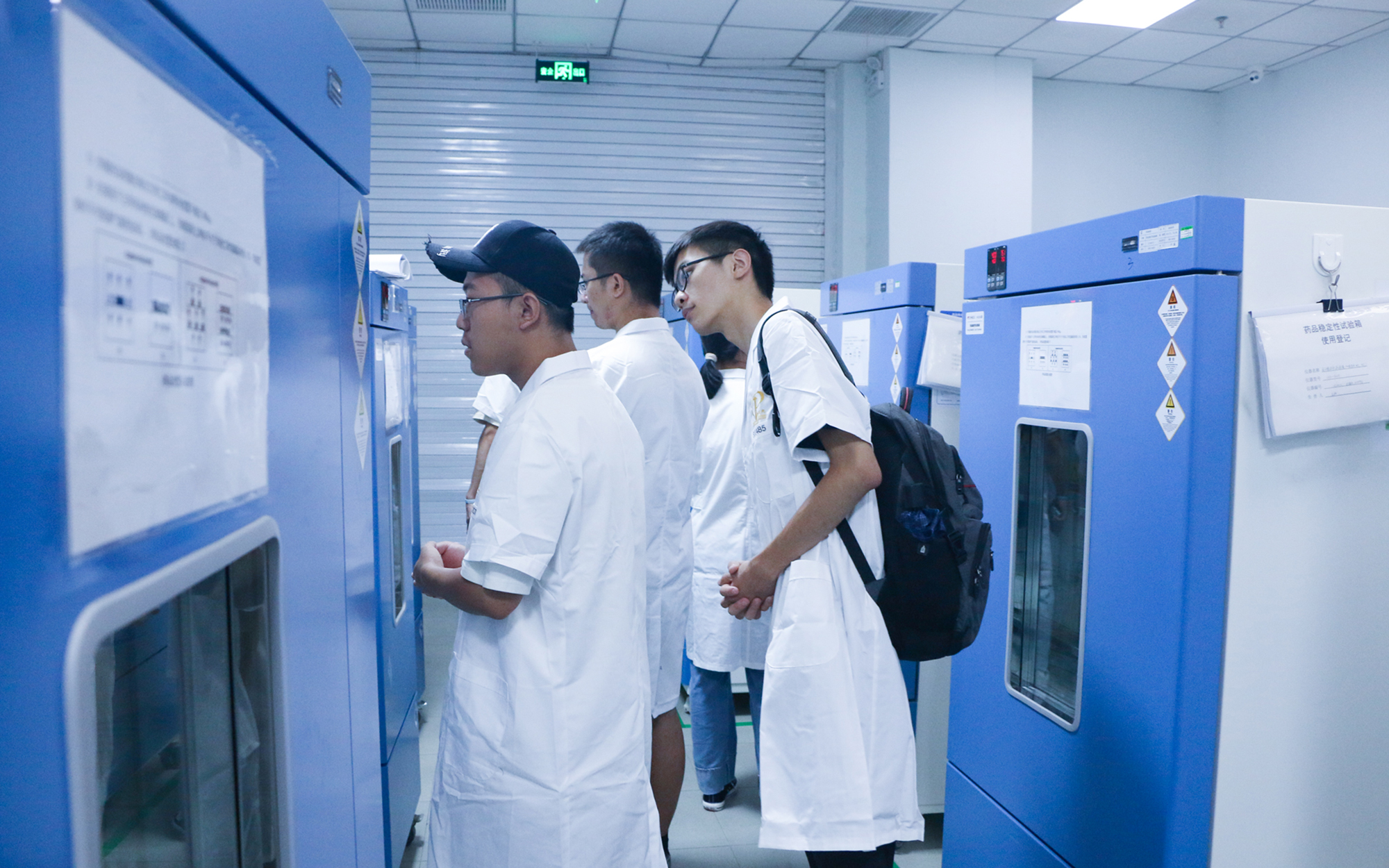 ▲ 師生共同參觀了藥學(xué)研發(fā)實(shí)驗(yàn)室