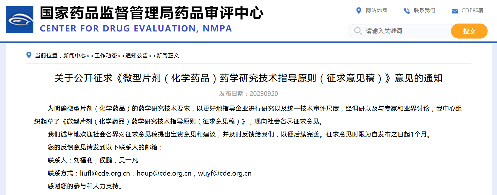 關(guān)于公開征求《微型片劑(化學(xué)藥品)藥學(xué)研究技術(shù)指導(dǎo)原則》(征求意見稿)意見的通知