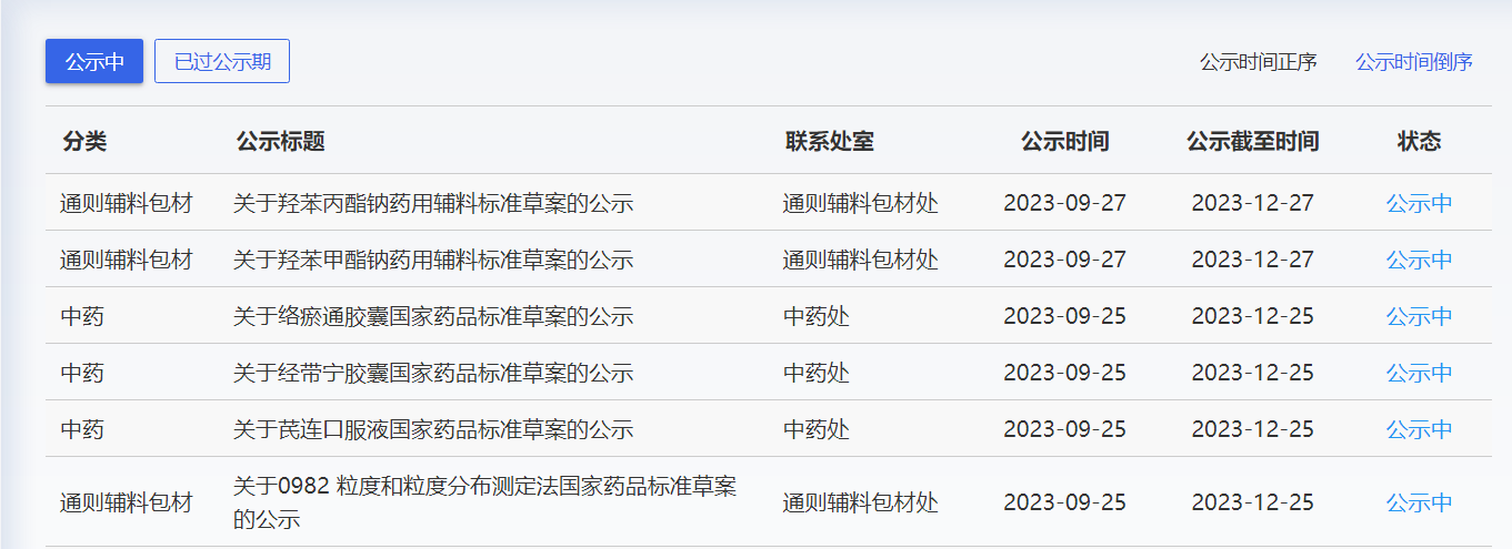 近期藥典委發(fā)布關(guān)于芪連口服液、經(jīng)帶寧膠囊、絡(luò)瘀通膠囊三個品種藥品,羥苯甲酯鈉、羥苯丙甲酯鈉藥用輔料標準草案的公示。
