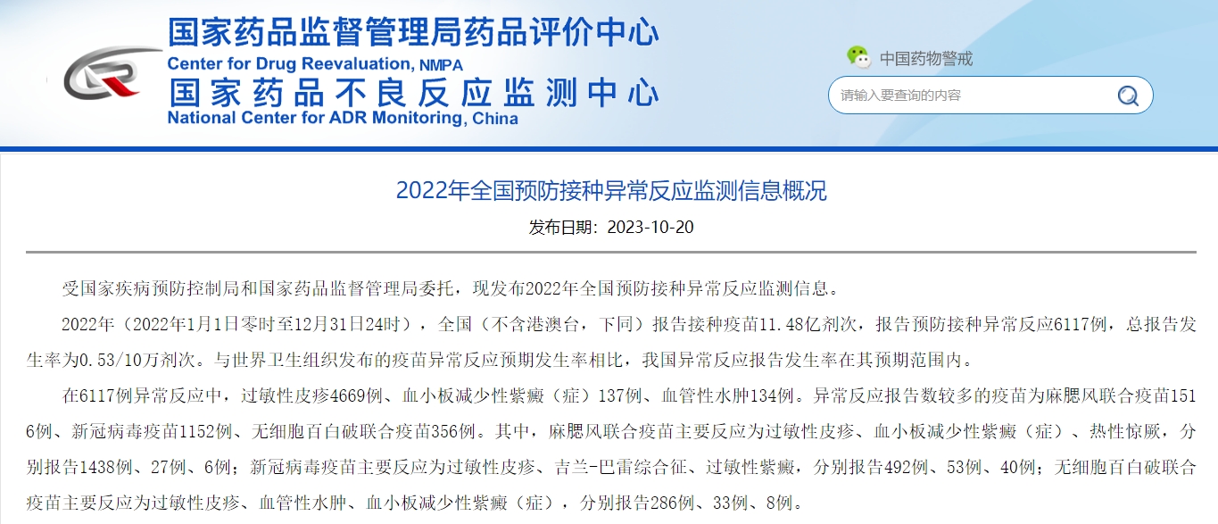 2022年全國(guó)預(yù)防接種異常反應(yīng)監(jiān)測(cè)信息概況