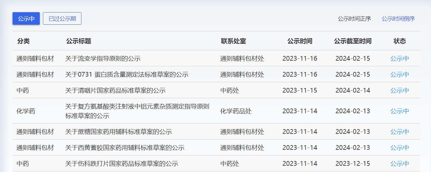 本周國家藥典委共發(fā)布2個(gè)國家藥品標(biāo)準(zhǔn)草案公示,2個(gè)國家藥用輔料標(biāo)準(zhǔn)草案公示。