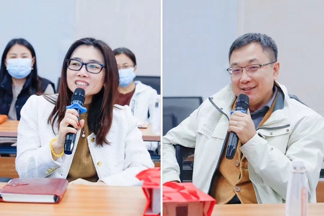 ▲新領(lǐng)先總裁助理兼綜合信息部總監(jiān)劉芳女士(左)、藥酚享李媛老師(右)分別代表雙方作工作總結(jié)匯報