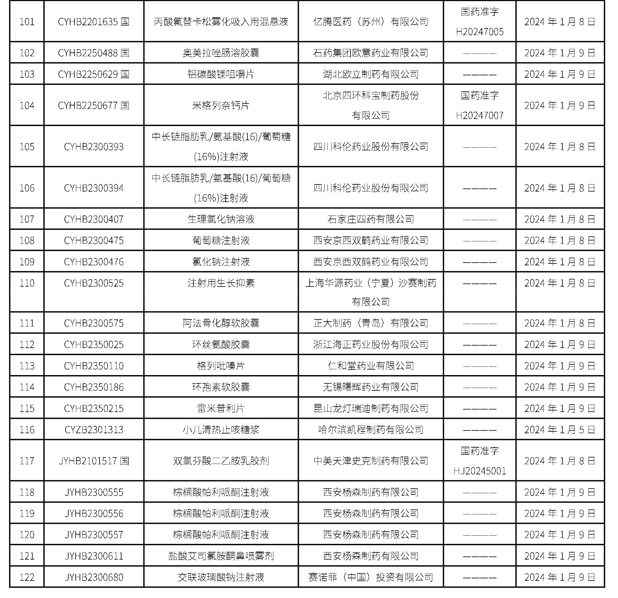 截至2024年1月12日 15:00本周發(fā)布122個待領(lǐng)取藥品批準(zhǔn)證明文件,其中注射液48個,一致性評價品種36個。